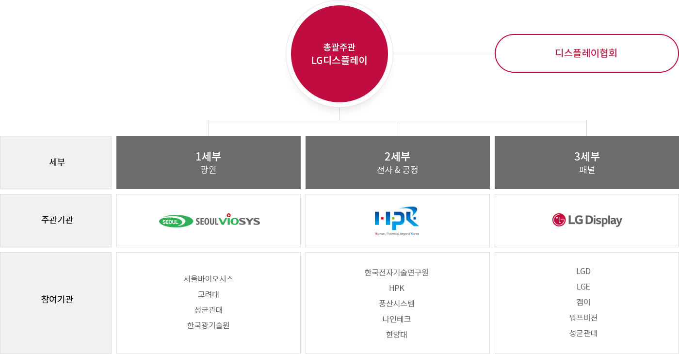 | 총괄 | 5㎛급 고효율 마이크로 LED 광원과 이를 이용한 LED 디스플레이 모듈 제조 기술 개발 |