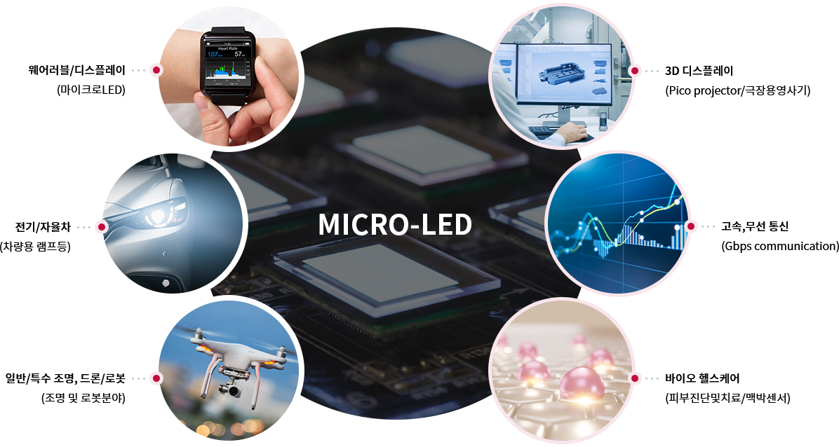 마이크로LED는 ‘저 소비전력’, ‘야외 시인성’, “높은 패널 신뢰성” 바탕으로, 다양한 분야의 적용이 가능하며 , 이에 따른 Display 시장의 외연 확장이 가능한 기술이다.